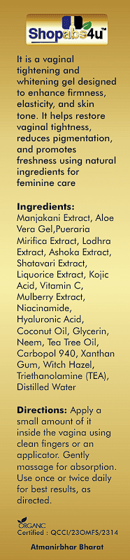 Experiencing a loss of firmness or uneven skin tone in your intimate area? Hormonal changes, aging, or childbirth can impact vaginal elasticity and cause pigmentation — affecting confidence and comfort. V Tightening & Whitening Gel is a gentle, plant-based formulation created to enhance firmness, elasticity, and skin tone while promoting freshness and hygiene.